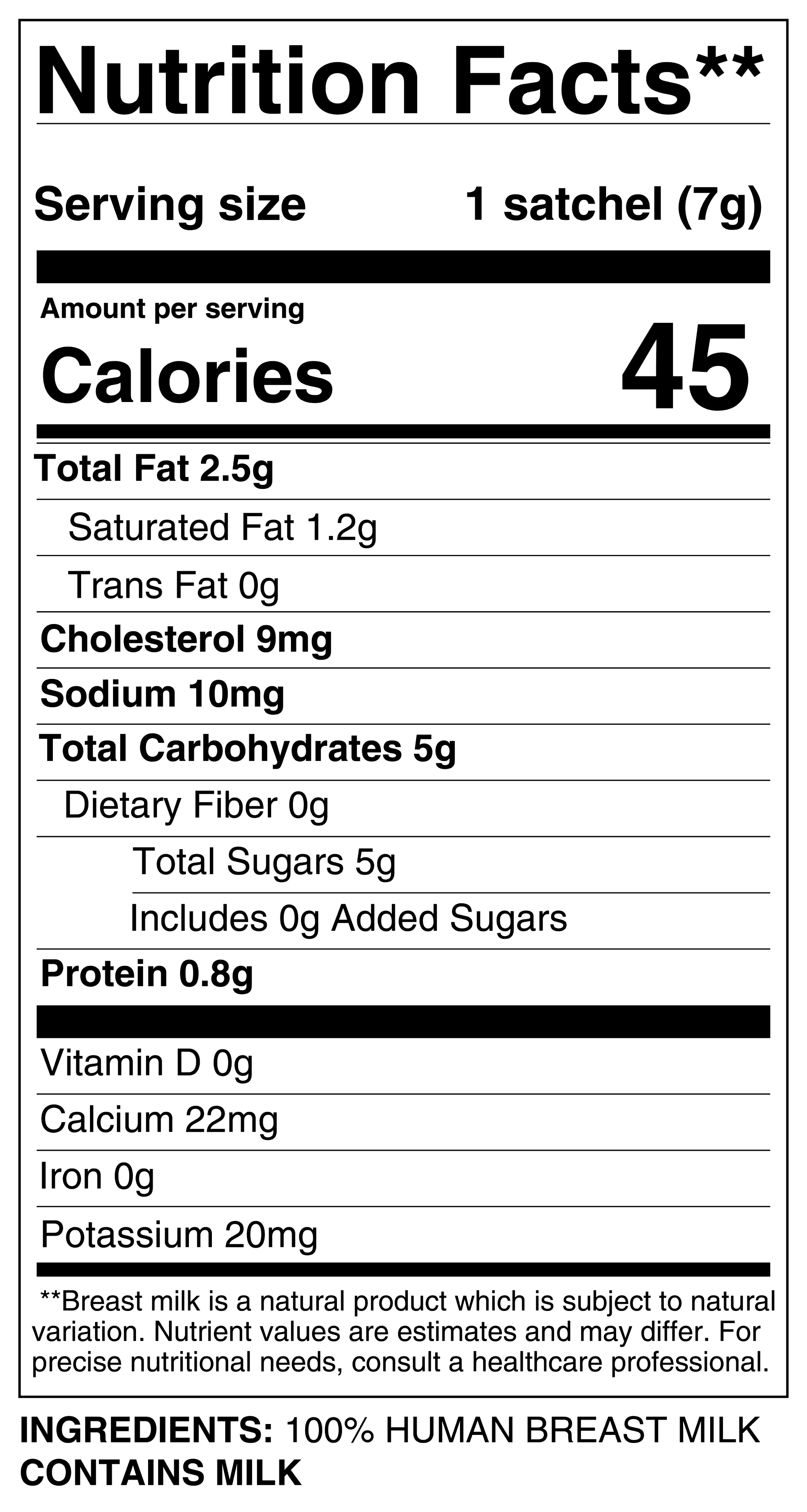 Only one ingredient: 100% real donor milk. Gently freeze-dried to keep developmental benefits intact.